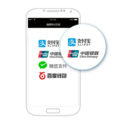 小锦支付平台,为iOS/Android原生/H5 App提供支付解决方案:支持微信支付、支付宝支付、银联手机支付、百度钱包等。